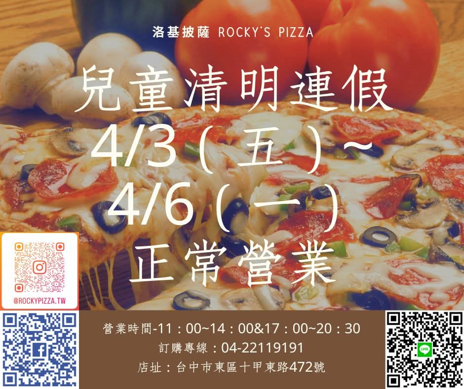 洛基披薩將於「兒童、清明節連假」正常營業!𝐎𝐏𝐄𝐍!